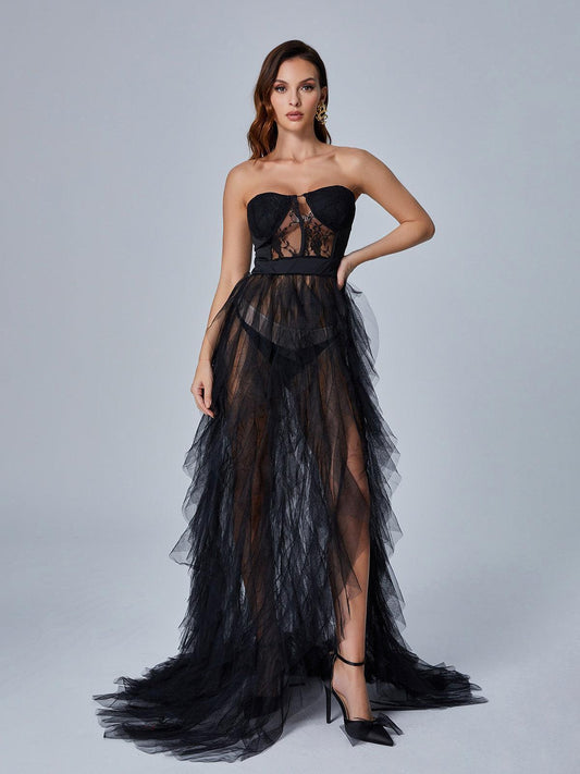Abito Maxi Senza Spalline Arygon con Cutout in Nero