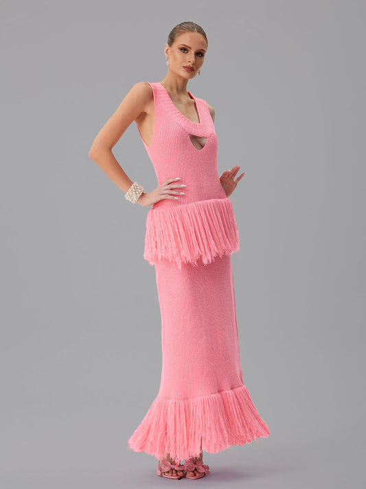 Abito Maxi Senza Maniche in Maglia con Frange Jutpulsar