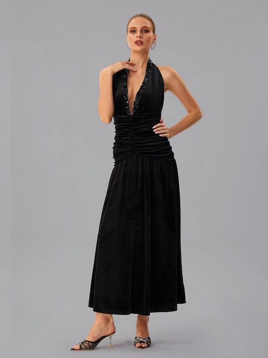 Abito Maxi Arricciato con Scollo Halterneck Faro