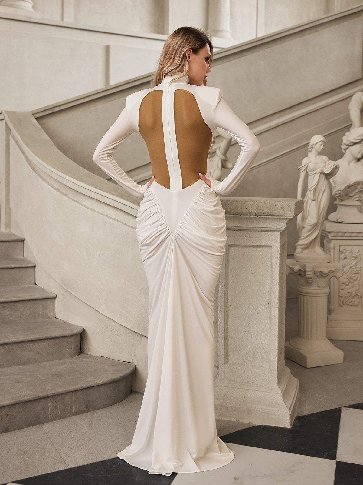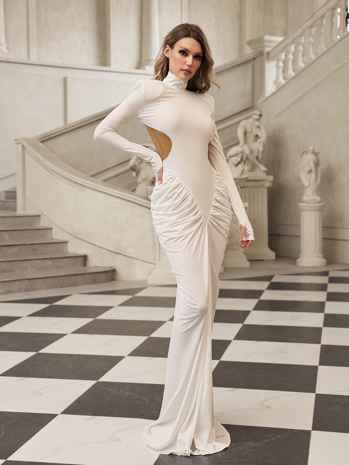 Abito Maxi Arricciato Gwydion con Collo Alto
