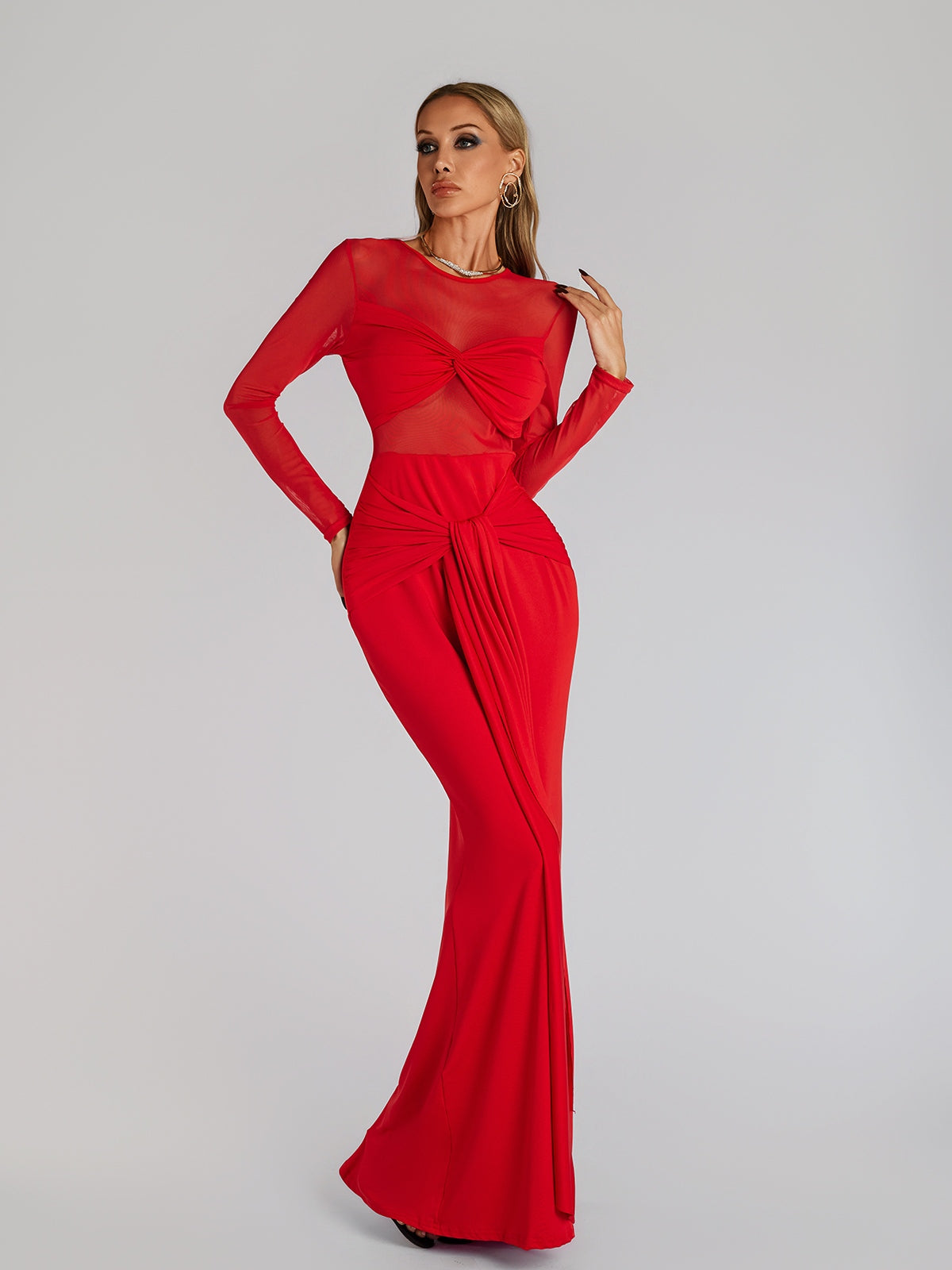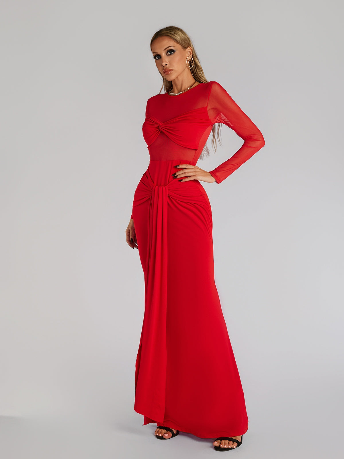 Abito Maxi con Maniche Lunghe e Fiocco Fares