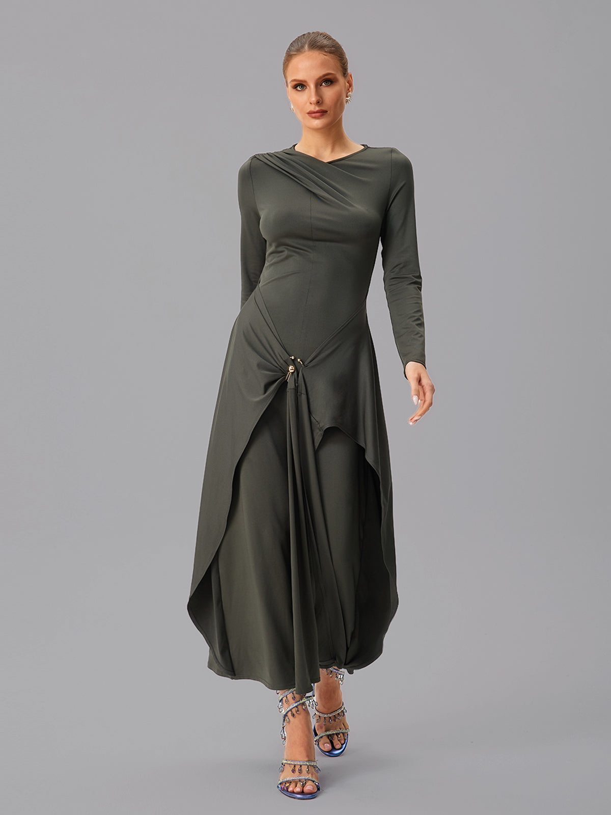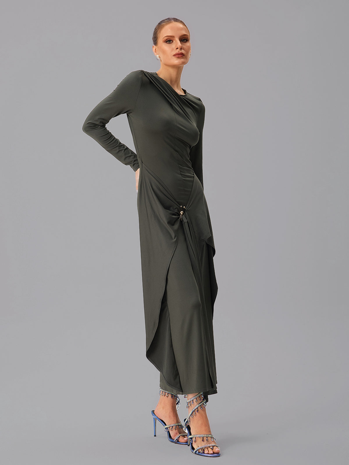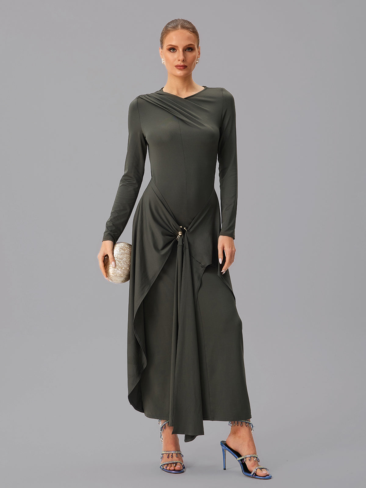 Abito Maxi Drappeggiato a Maniche Lunghe Jovectra
