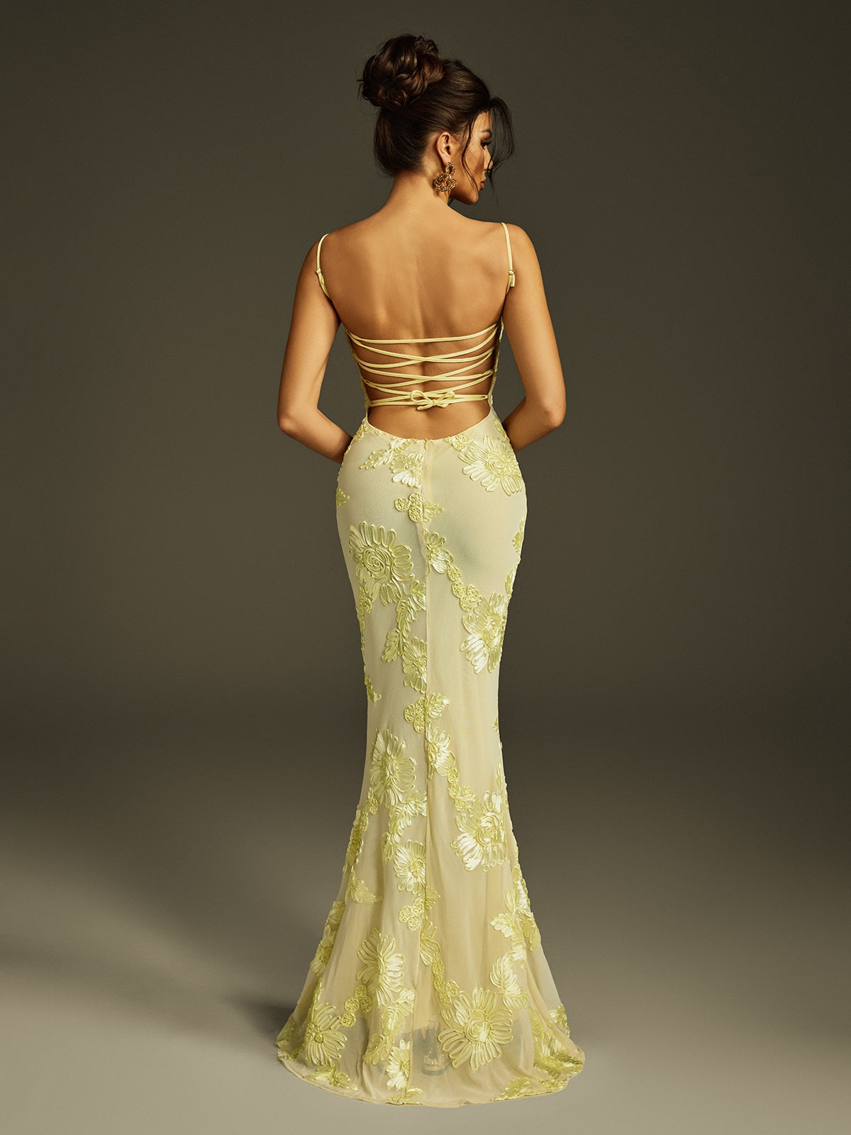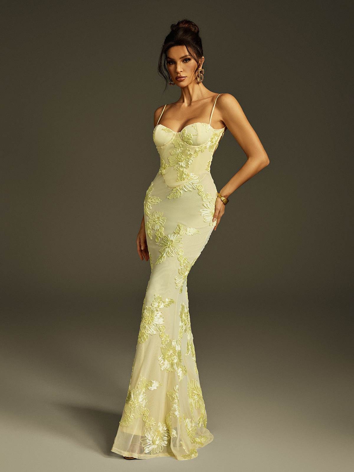 Abito Maxi Ricamato con Fiori Zryne Spaghetti