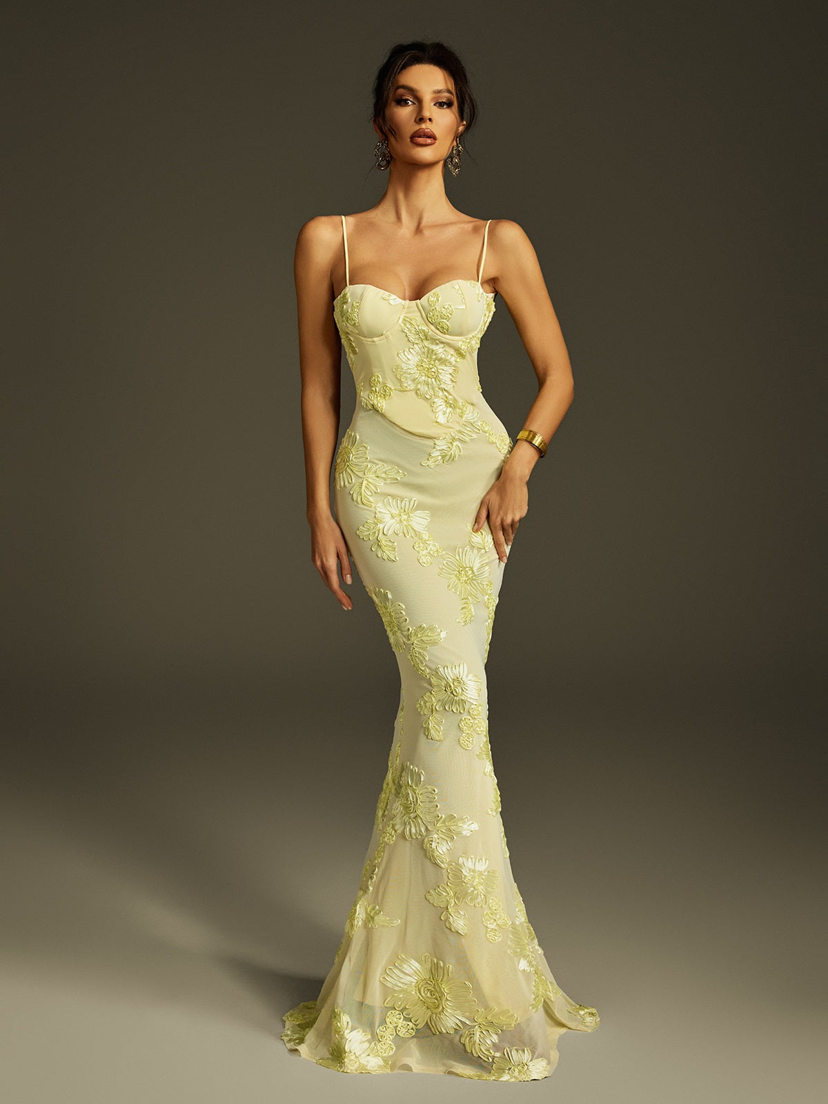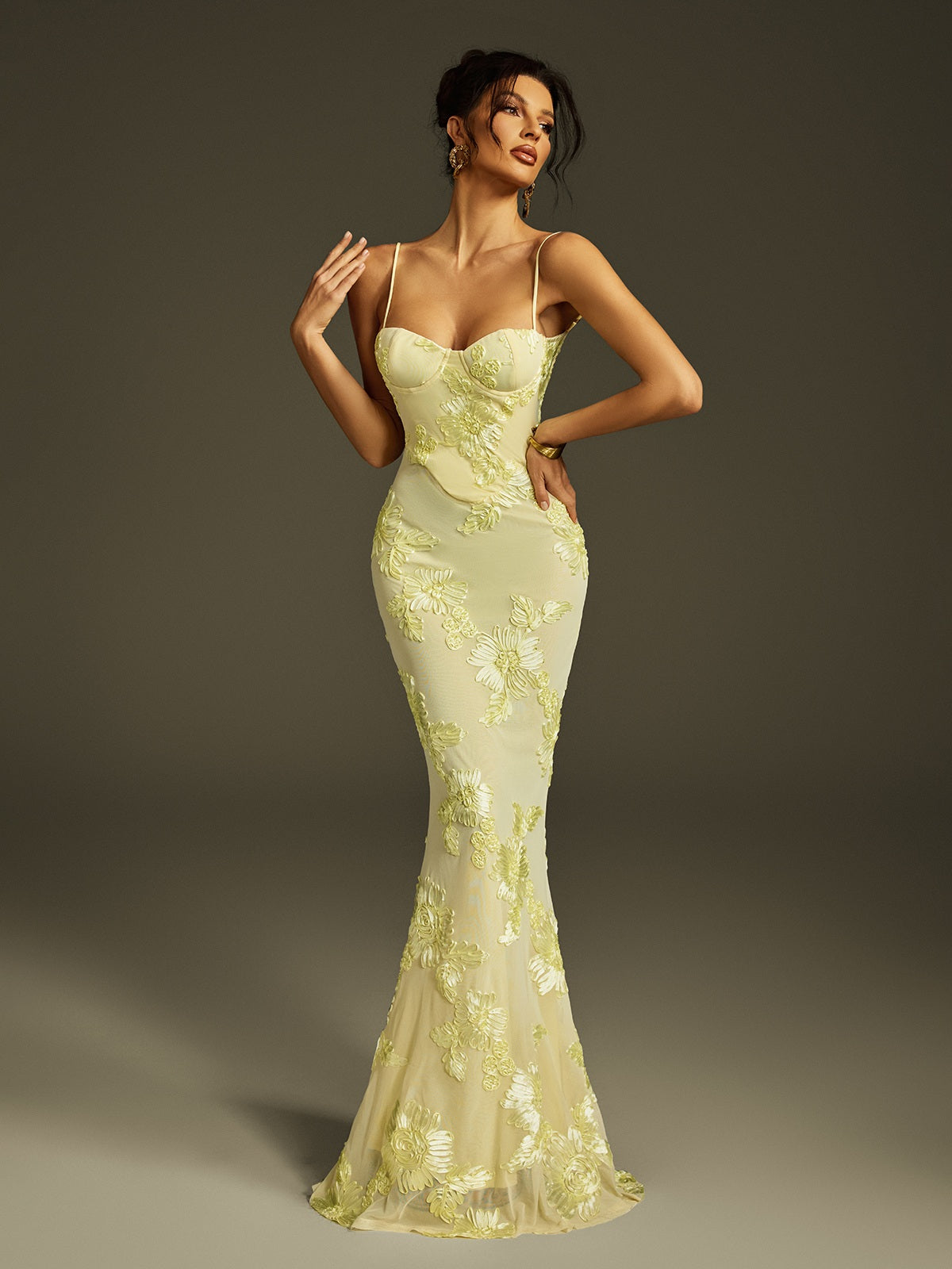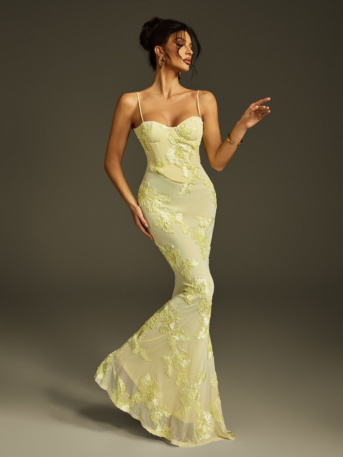 Eleva il tuo guardaroba con l'Abito Maxi Ricamato con Fiori Zryne Spaghetti. Realizzato con cura con un intricato ricamo floreale, questo abito maxi fluido combina eleganza e comfort. Le sottili spalline a spaghetti offrono una silhouette lusinghiera, perfetta per qualsiasi occasione, dalle feste in giardino alle uscite serali. Abbraccia uno stile senza sforzo e una bellezza senza tempo in un pezzo straordinario che si muove con grazia con te.