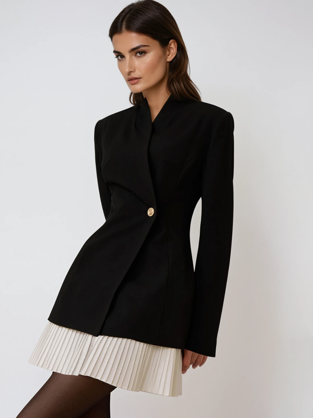 Attira l'attenzione con l'Abito Mini Blazer Pieghettato Linux, dove un taglio preciso incontra pieghe giocose. Questo abito mini combina la sofisticazione strutturata di un blazer con una gonna pieghettata e flirty, creando un look audace e moderno. Perfetto per fare colpo al lavoro o durante uscite serali, offre uno stile sicuro con un tocco contemporaneo. Eleva il tuo guardaroba con questo pezzo versatile e chic.