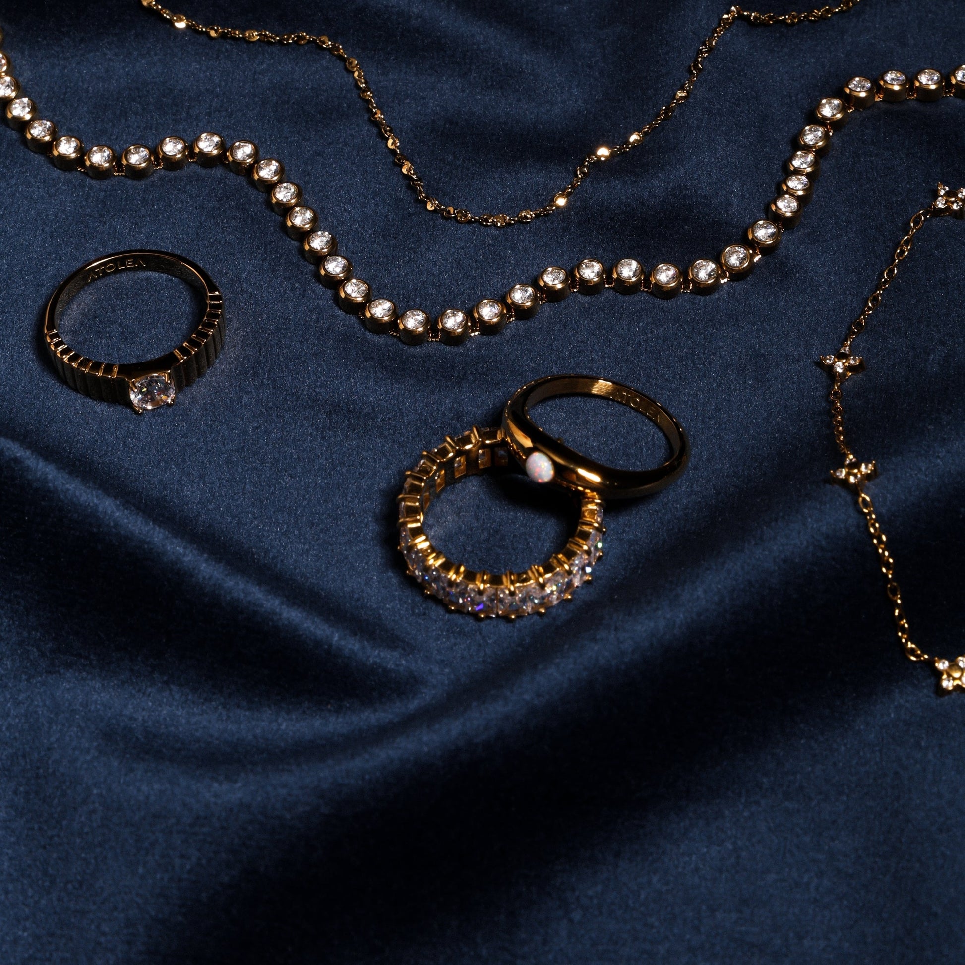Conosciuto come la pietra dell'ispirazione e dell'intuizione, l'opale naturale è stato ammirato per secoli per i suoi colori cangianti e il suo bagliore vivente. Ogni riflessione racconta una storia diversa, rendendo ogni anello profondamente personale, un promemoria per seguire il proprio ritmo e la propria luce interiore.