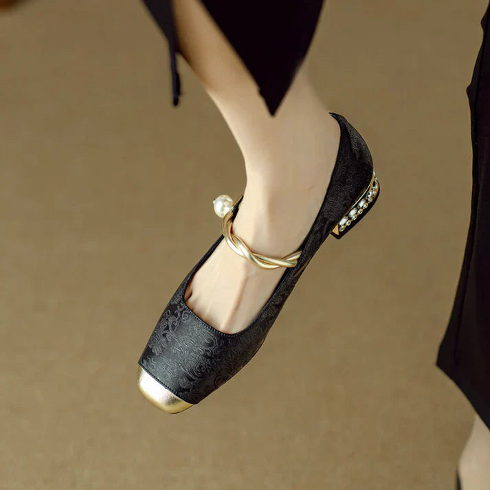 Un equilibrio poetico di eleganza e leggerezza, questo paio è avvolto in jacquard lucido ed è dotato di una soletta imbottita per un comfort inaspettato. La fascia scultorea e il tacco impreziosito da gioielli evocano un'epoca più gentile – dove la bellezza risiedeva nei dettagli e il fascino parlava dolcemente.